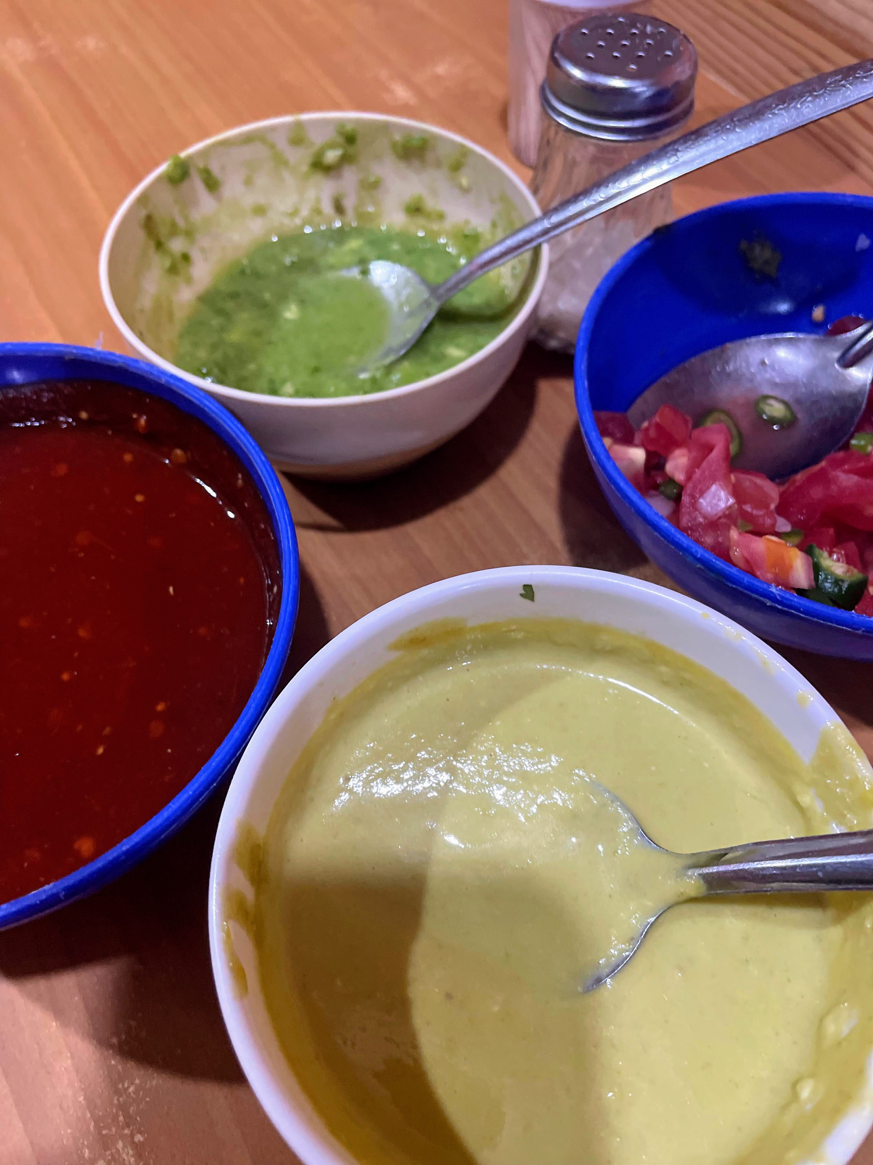 Las tortillas son pequeñas, pero cumplen: suaves, calientes y bañadas en aceite como manda la tradición de toda taquería que se respete. Le dan un toque crujiente y sabroso que acompaña bien cada bocado. Las salsas tienen muy buen sabor, especialmente la verde, pero, como en muchas taquerías de Puebla, la variedad es limitada, con solo cuatro opciones que, aunque buenas, no sorprenden.