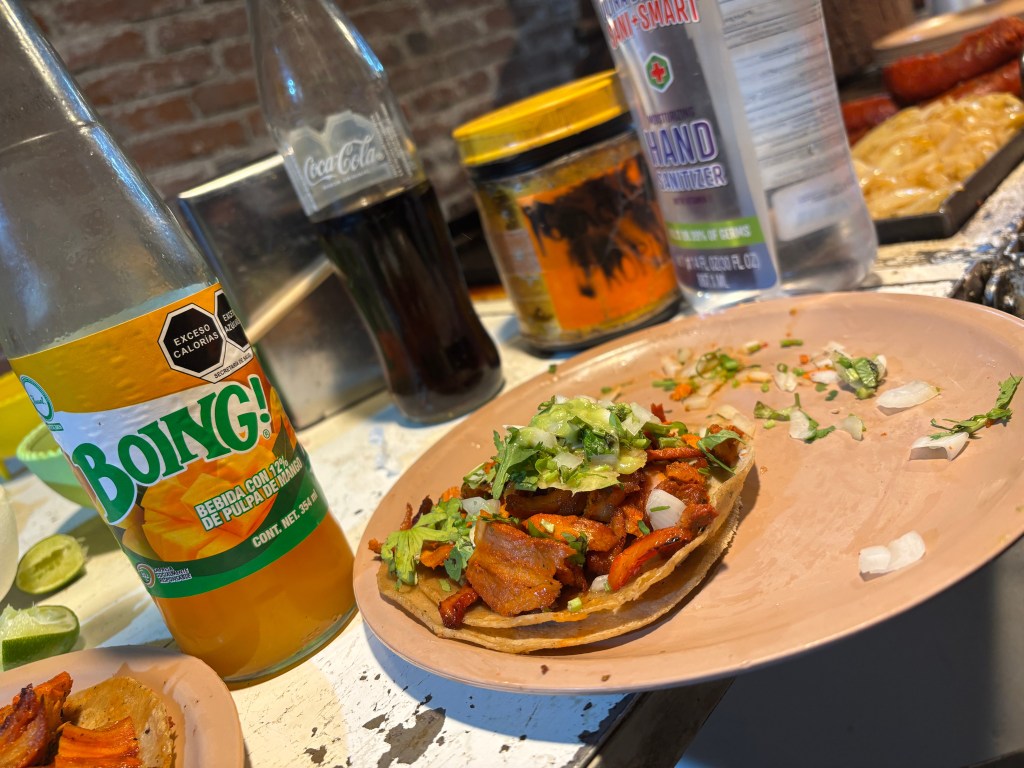 La carne está en su punto justo: jugosa por dentro, dorada por fuera y con esa grasita que hace salivar. Eso sí, el adobo podría tener un poco más de intensidad, lo cual sería el toque final para elevar el sabor. Las tortillas son grandes, resistentes y bañadas en la grasa de la parrilla, lo que les da un sabor increíble.