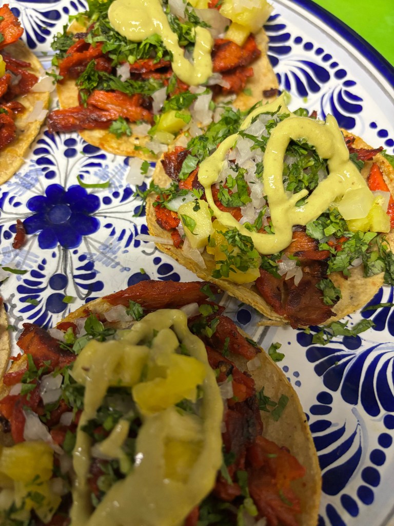 Taquería Taboo es de esos lugares que confirman que las apariencias engañan. A simple vista, el local pasa desapercibido: apenas tres mesas en un pequeño espacio sobre la calle 25 Sur. Sin embargo, lo que sale del trompo merece tu atención. La carne al pastor tiene un sabor distintivo, diferente al que se encuentra en cadenas más comerciales. Aunque no es particularmente jugosa, sí está bien dorada, y su marinado aporta notas que la hacen única, casi con un toque casero.
